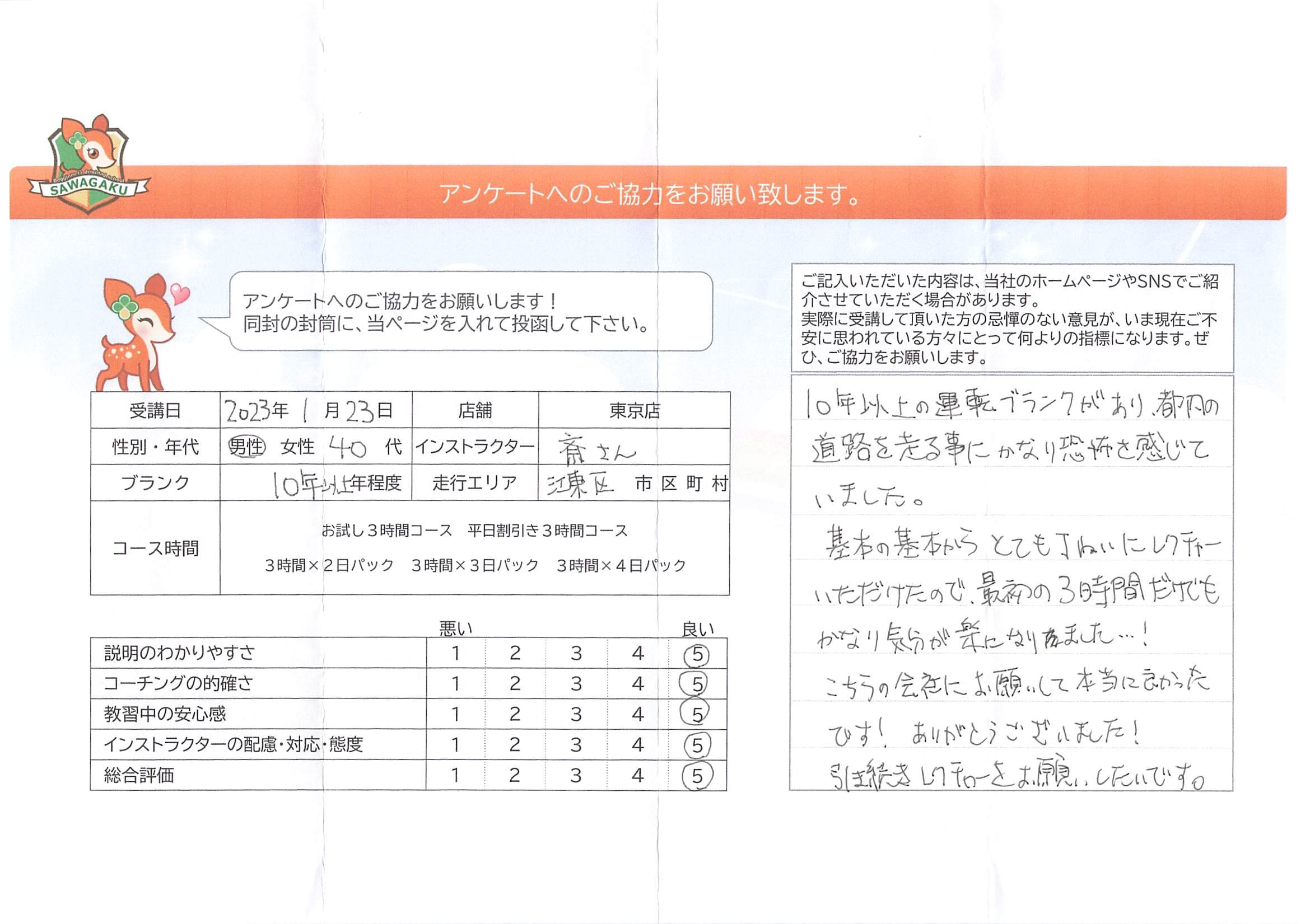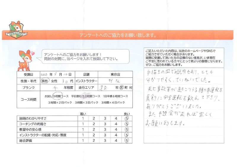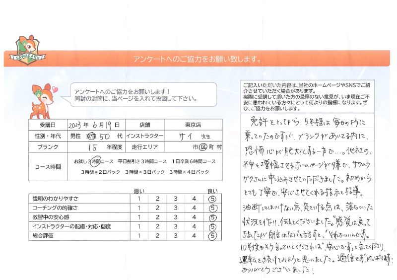 サワムラガクでは、教習後にお客様にアンケートを実施しており、